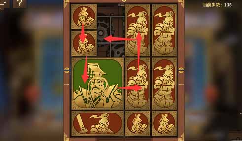 6、然後左上角的逆時針移動,讓將軍向右側移動一格,左上的小方塊下來。
