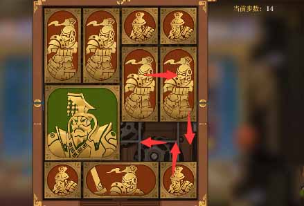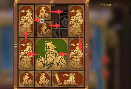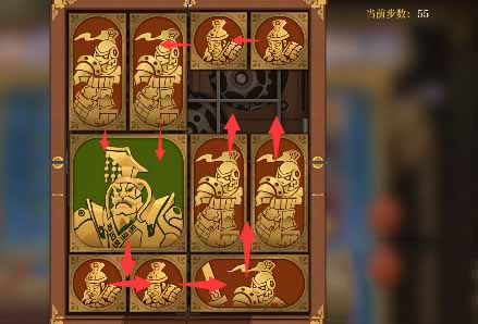 9、最後水平方塊向上一格之後,下方的小方塊靠右邊即可讓將軍走出去。