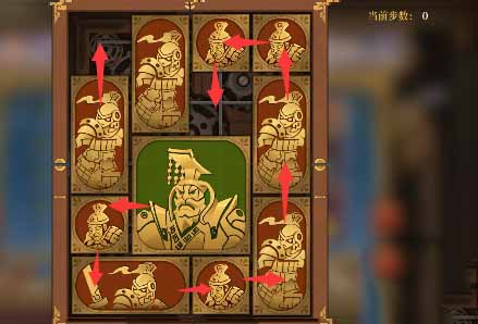 5、左側豎直方塊向下一格,外側的方塊逆時針旋轉移動,將軍向右一格,上方第二層的小方塊向下和下方的小方塊豎直放一起。