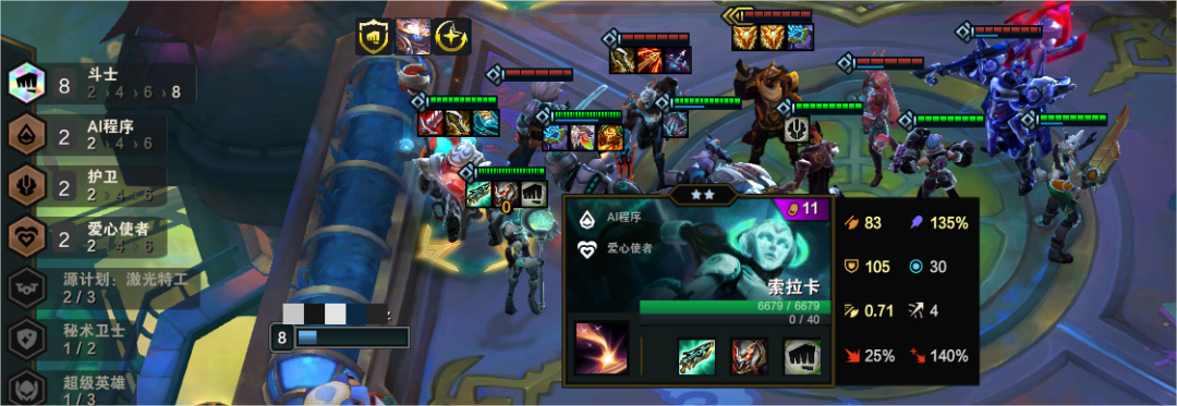 4.運營思路:2-1拉4,2-5拉5,第一個海克斯刷到鬥士心或者鬥士轉就可以直接考慮玩,用4鬥士搭配2AI/2愛心/3源計劃之類的羈絆過渡即可。2AI只要是加永久生命值效果的就無腦選,沒有的話盡量拿團隊回血/攻速/法強等;
