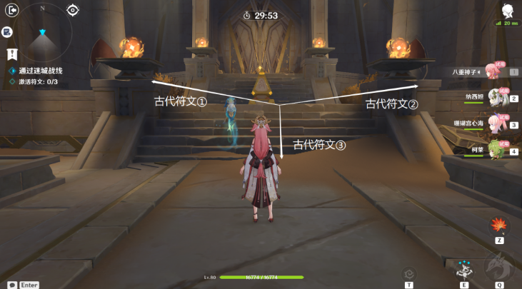 4、進入挑戰後,可以前往不同的方向激活古代符文,一共有3個。