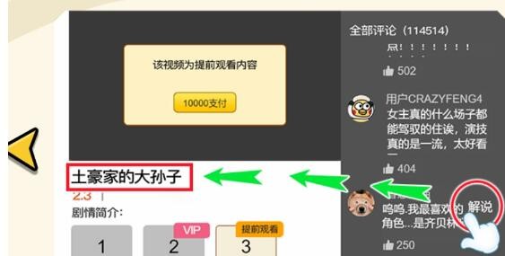 4、最後把評論區的【解說】兩個字,拖到劇名的旁邊,即可成功通關