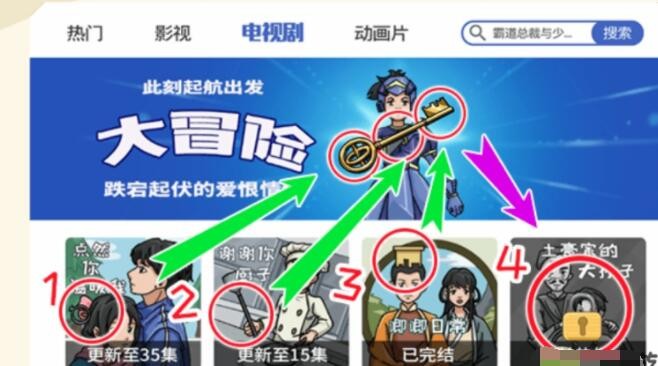 1、【不能看的劇】關卡首先需要拖動劇集中的鑰匙合成金色的鑰匙,用鑰匙解鎖右下角的鎖