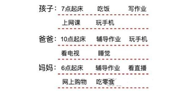 2、孩子挨罵:7點起床、吃飯、寫作業、上網課、玩手機、輔導作業、6點起床、輔導作業