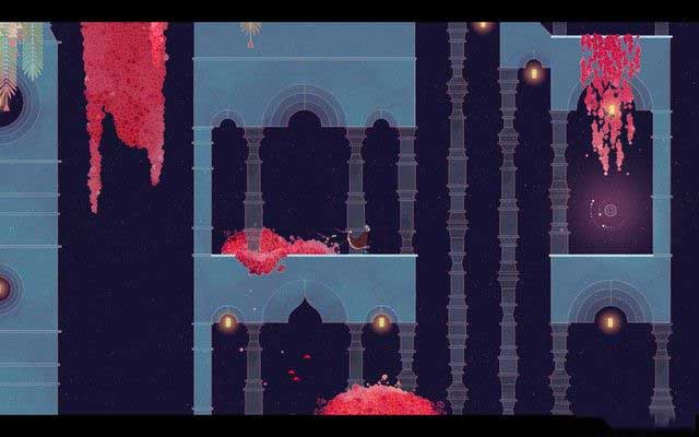 之後在建築消失之前到建築的頂端,觸發頂端的黃色花叢,飛上去。