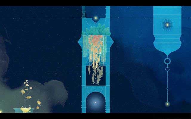 然後在上面的水體中找到花叢讓它跟隨你,利用這個花叢飛到最右邊的水體中,
