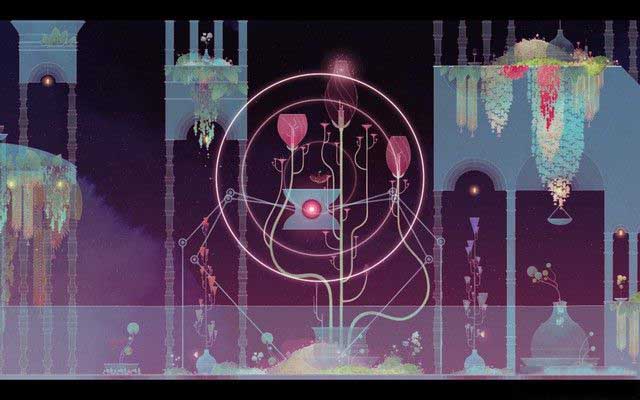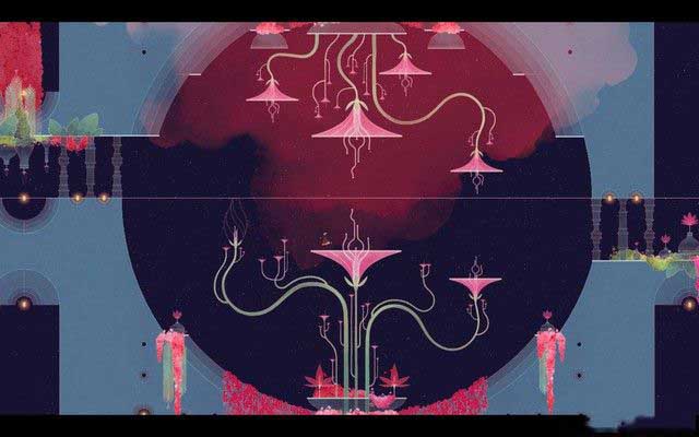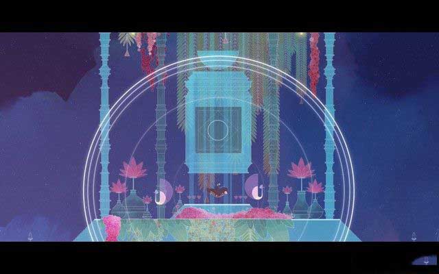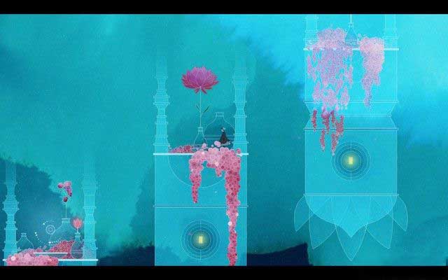 進入圓形房間,這里使用L將裡面的花苞打開,然後踩著盛開的花,到達左邊。