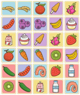 1、這一關是把相同的食物翻翻樂的玩法,考驗記憶力的