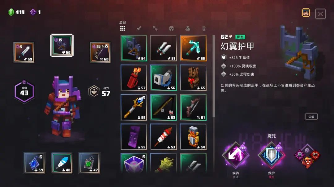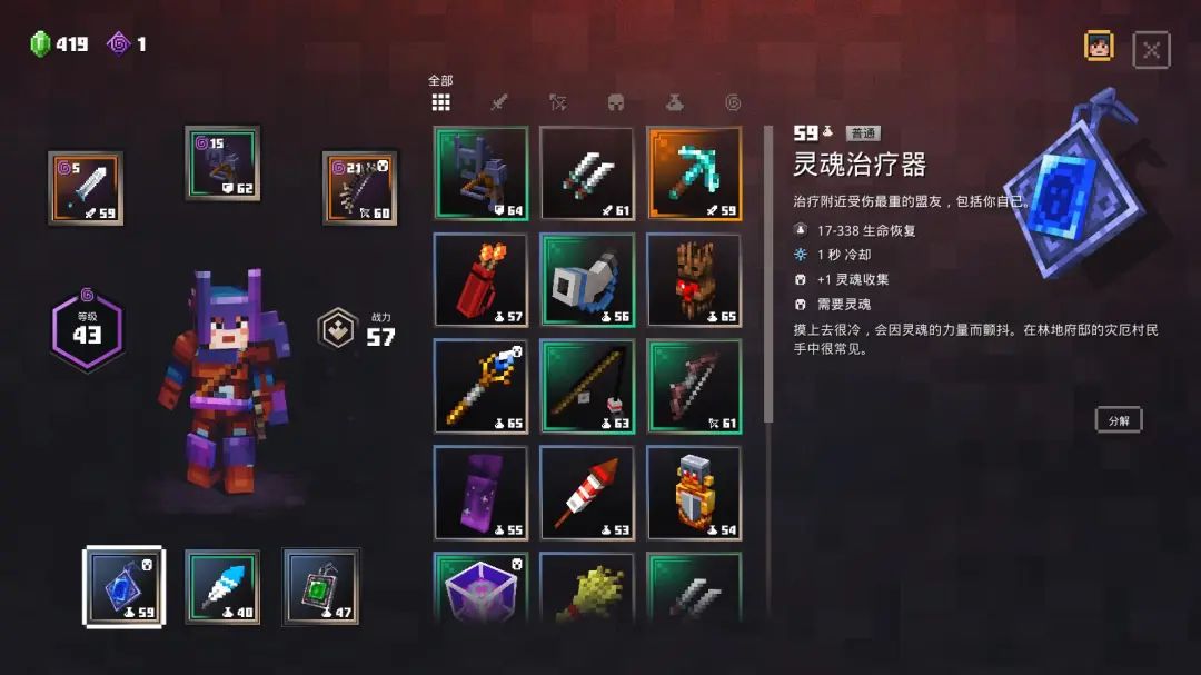 《我的世界:地下城》沒有角色職業一說,角色的技能都來源與自己的裝備。