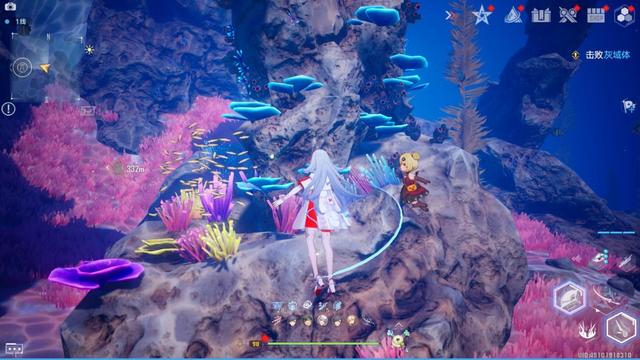 不過,《幻塔》也在儘力還原海底的生態環境與結構,比如在高深度的海底,雖然沒有讓環境黑到伸手不見五指,但玩家的能見度也被壓制,很多地方只有前進或下潛到一定程度,才能看清周圍的地貌與風景,一下子豁然開朗。