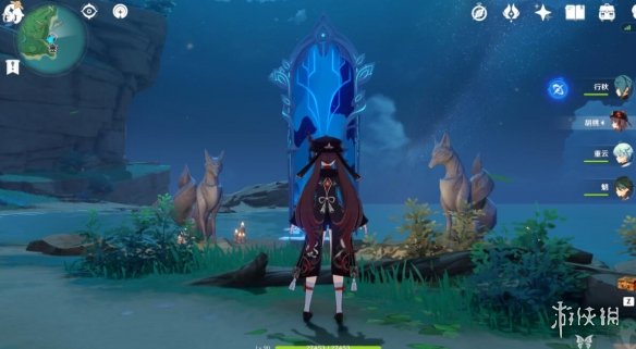 所以選擇了火元素角色胡桃,其他位置我放了兩個風元素角色,只是為了增加移動速度,不出戰,綾華是私心陪玩,依然不出戰。