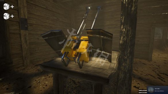 前往坡下一個有瞭望塔的建築一層,在屋子裡找到槍管,組裝後獲得新武器[雙管火炮]。