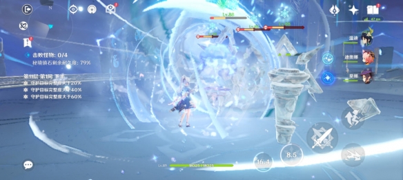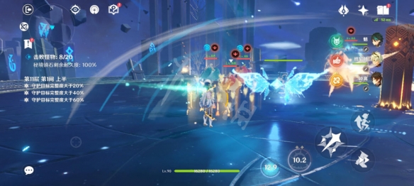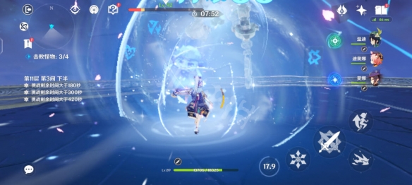 這關依然是給風系送福利,這里我們是直接用擴散把前面兩個深淵法師的盾給打掉了,等深淵詠者出現,先不要管那兩個深淵水法師,我們先把深淵詠者的第二狀態打出來【也就是說使徒一倒地,你就開大招擴深淵法師的水這樣火使徒可直接秒掉】。
