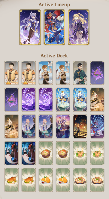 考慮到每回合一般只有8個行動點數可支配所以我選擇的手牌盡量費用偏少或者零費並且要盡量避免有回合制收益的手牌因為可能會減少切人的機會和打斷反應思路。