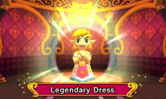 通過收集各種素材,林克還能在鎮子的服裝店裡購買各種很有梗的服裝。這些服裝大多都有自己獨特的能力提升,對冒險有不少幫助。這其中還還包括了大家最喜聞樂見的……女裝,還不止一件下面這件穿的是塞爾達的衣服