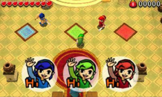 其實多人塞爾達早在2002年就已經誕生了。玩過GBA的小夥伴一定知道,除了《縮小帽》外,GBA上還有一部塞爾達合集《眾神的三角神力+四之劍》。小時候一直以為這個合集是商家山寨的合卡,後來才知道,其實就是官方出的合集。一個是SFC《三角神力》的重製版,《四之劍》則是全新的聯機遊戲。
