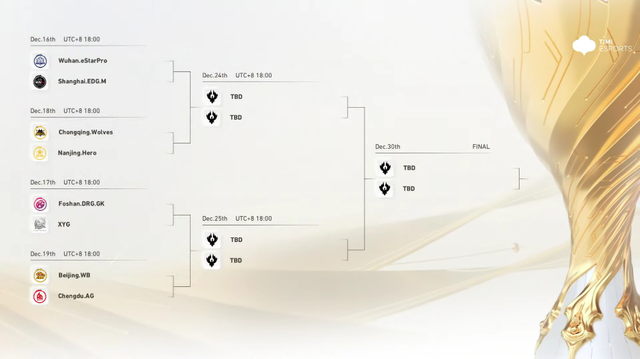 屆時,四支隊伍將在12月24日、12月25日進行半決賽,並在12月30日決出冠軍。