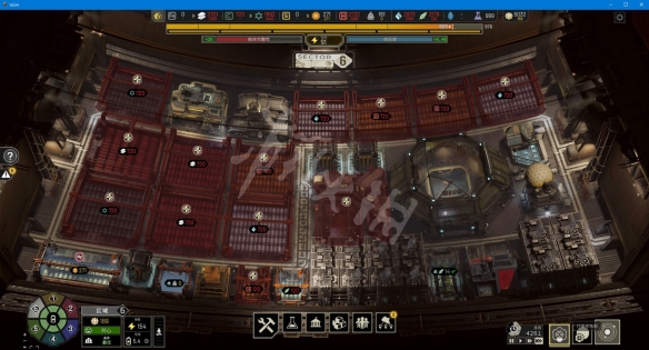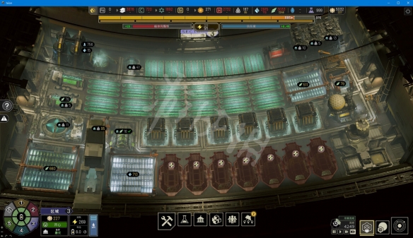 最下面的昆蟲農場是為了湊專業化的“擺設”,那個廟宇放這里是因為空間恰好利用,雖然已經不在乎穩定度,但它還能提高10點船體完整性。這個布局還有個好處,可以囤積的資源比較多。不過這個軟體有些不穩定,有時候1個3級倉庫能搞定5個區域,有時候要多加幾個倉庫才能保障。