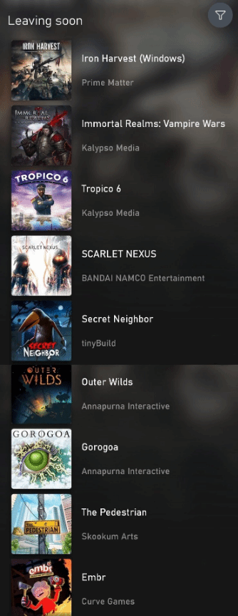 2022年最後一個月已過大半,雖然Xbox尚未公布月中XGP追加遊戲陣容名單,但在日前卻發布了了數款即將於12月31日離開Xbox Game Pass和PC Game Pass的遊戲。包括《海島大亨6》《緋紅結系》以及《鋼鐵收割》等9款作品即將離庫。