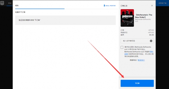 點擊領取後會進入結賬頁面,直接點擊下訂單即可。