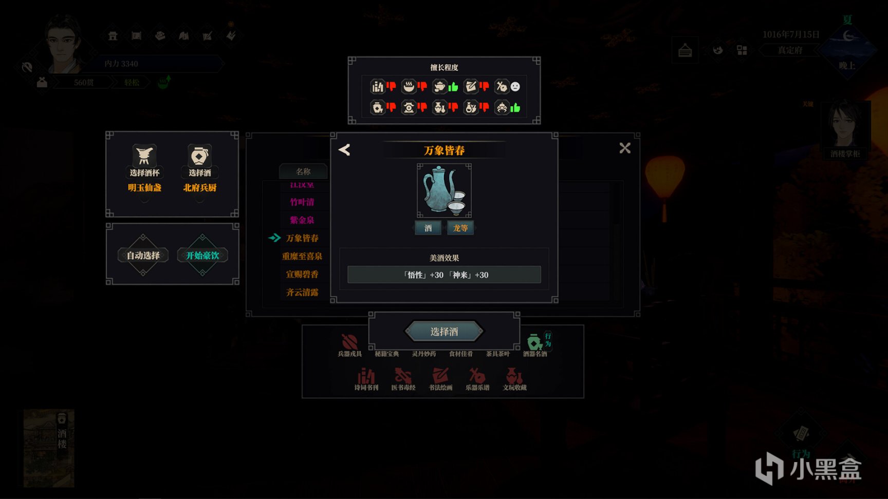 - 琳琅滿目的養成系統,包括烹飪、點茶、鑒寶、關撲、演奏、賦詩、製藥、寫作、繪畫、撰寫功法秘籍等等等等
