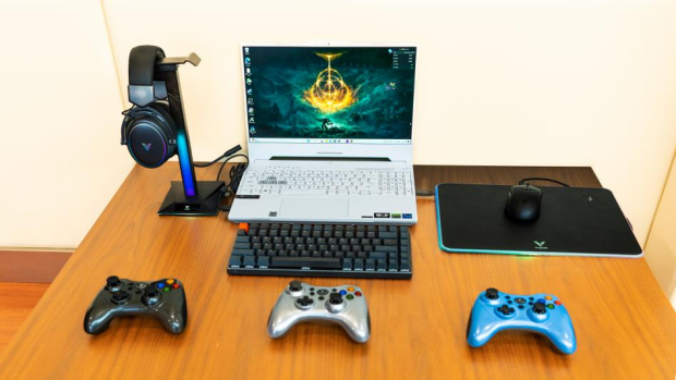 將耳機與耳機支架擺放上游戲桌面,此時我們便集齊了雷柏外設全家桶六件套,整體質感相當優秀!