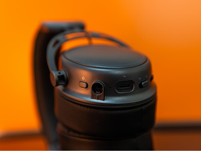 可伸縮皮質頭梁與全包耳式蛋白質耳罩表面做工也相當細膩,觸摸手感媲美皮革質感。