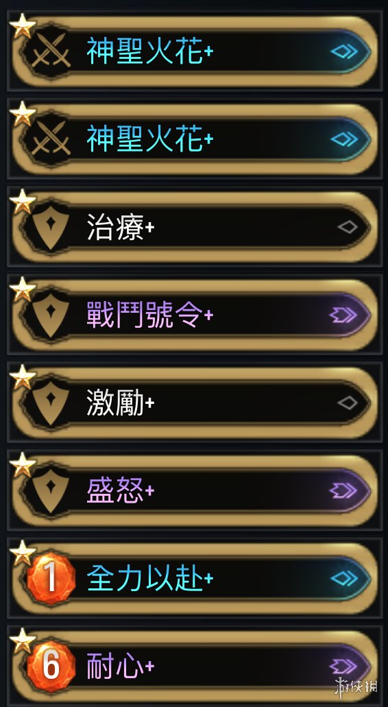 這套卡組和刷黑暗的那套使用流程區別不大,只是把輸出牌換成了神聖火花(一定要打模組),但是對積攢氣概速度和使用靈活性上遠超黑暗卡組,治療要刷出2強化才帶沒有的話用激勵(抽取最後攻擊)代替。項圈被動主要是用治療免費上buff和抽牌。