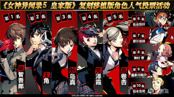 Atlus公布了《女神異聞錄5皇家版》國內角色人氣投票排行榜排名。