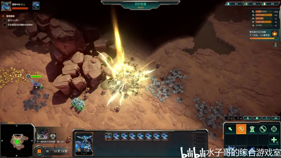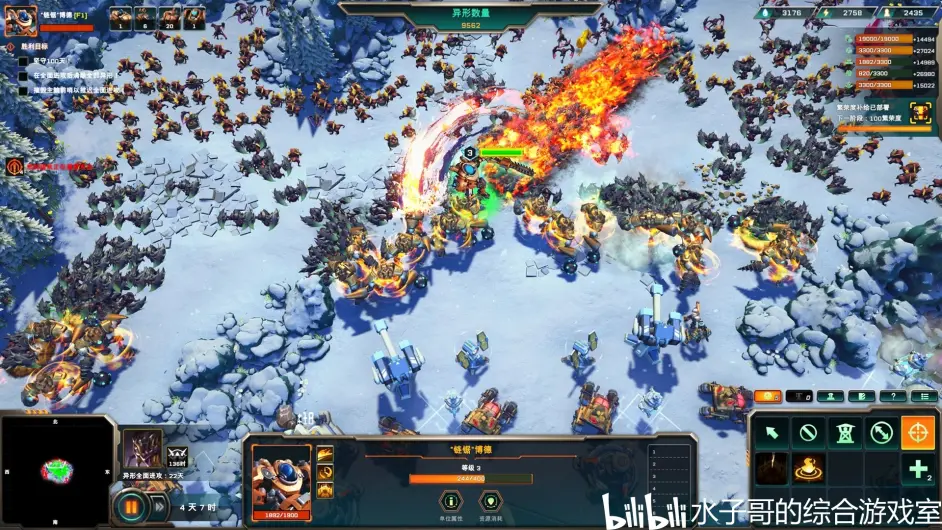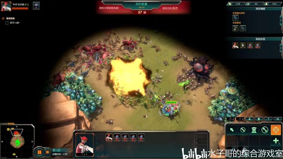英雄技能我們在上面也提到過本作的RTS屬於生存類,與傳統RTS區別沒有多國對抗的系統。人類為了種族發展的同時,異星球上的異形也會隨著時間而改變,有著厚實的裝甲覆蓋了它們的軀殼。在遊戲中異形的種類也非常多,比如可以引爆自身的異形、防禦力較低但移動速度很快的異形等,在這些背後還有異形首領,有著高範圍攻擊、瘋狂的攻擊慾望、特殊的技能等著玩家。