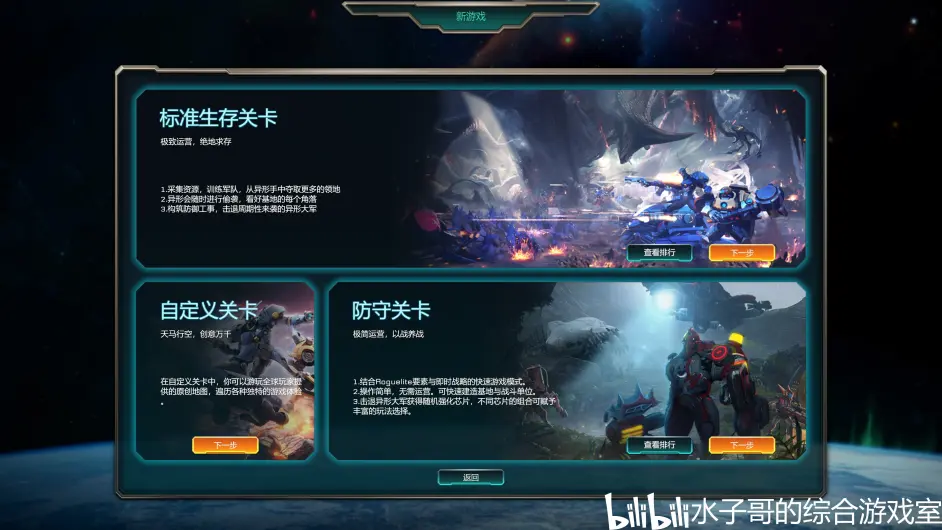 遊戲開始畫面以時間為驅動的生存類RTS《異星前哨》與之前傳統RTS相比較為不同,屬於生存類RTS,也可以說是偏向於塔防類的玩法,遊戲從操作上降低了新手玩家的門檻,側重點主要在自我的發育上,沒有復雜的微操,需要不斷搭建防禦工事、採集資源、部署各種兵種,用來抵禦一波又一波的異形入侵,在一局中就可以讓玩家體驗到遊戲樂趣和爽快感。