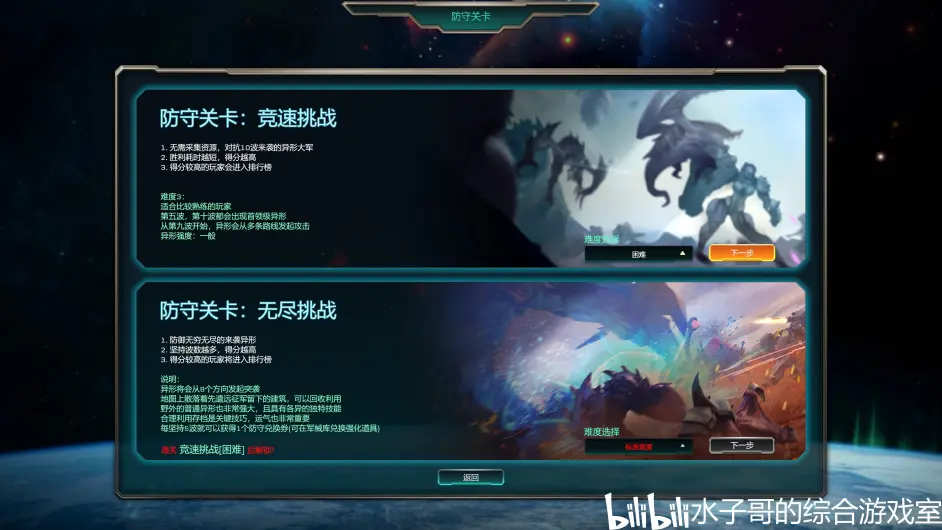 成群的異形進攻防守玩法相當於闖關一樣的感覺,抵禦一波異形入侵就可以獲得隨機獎勵,這個玩法無需採集特殊資源,也就是玩家無需考慮資源平衡產出,只需要合理搭配每關獎勵即可獲勝。