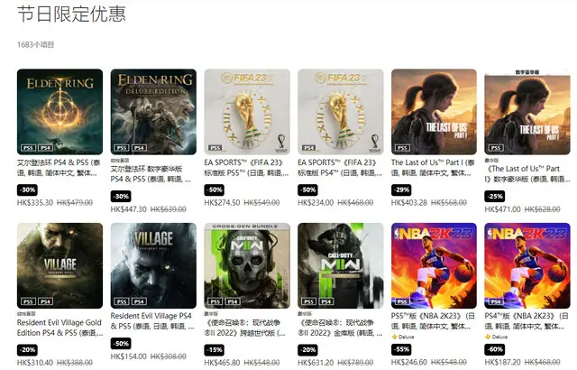 索尼PSN港服最近開啟了名為節日限定優惠的活動,居然一直開到2023年1月18日,本ACG吐槽君feichenpan表示這次活動有夠長的,期間有各類新老PS4/PS5數字版遊戲參與其中,例如《艾爾登法環》,《哥譚騎士》,《最後生還者重製版:第一部》,《生化危機8黃金版》等等,這里給大家推薦一下值得買的一些PS4/PS5遊戲,如果有我沒有推薦的,以您為主,您都是對的,還請大家各取所需,看看自己喜歡的遊戲類型和活動力度再買,如果你是PS+二檔或者三檔會員就不建議買了,直接慢慢等這些PS4/PS5遊戲入庫即可,性價比更高。