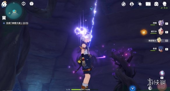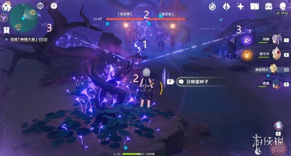 在雷櫻枝條位置,召喚雷種子,通過雷極飛起來指引仙靈。