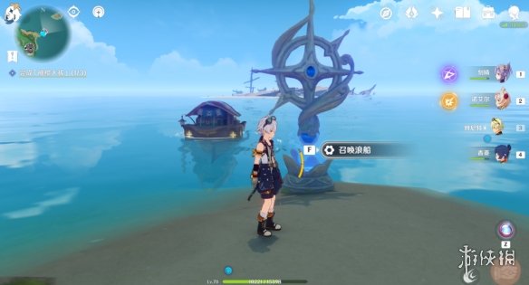 在島上的凹陷處,找到「地狐」雕像,使用「留念鏡」調查「地狐」雕像,開啟入口。