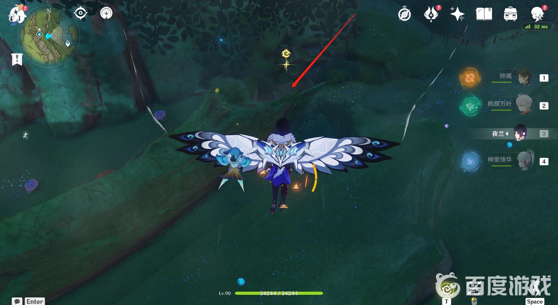 2、在秘境入口處向著東方向飛行,在空中時看向下方可以看到一個洞口,進入其中。