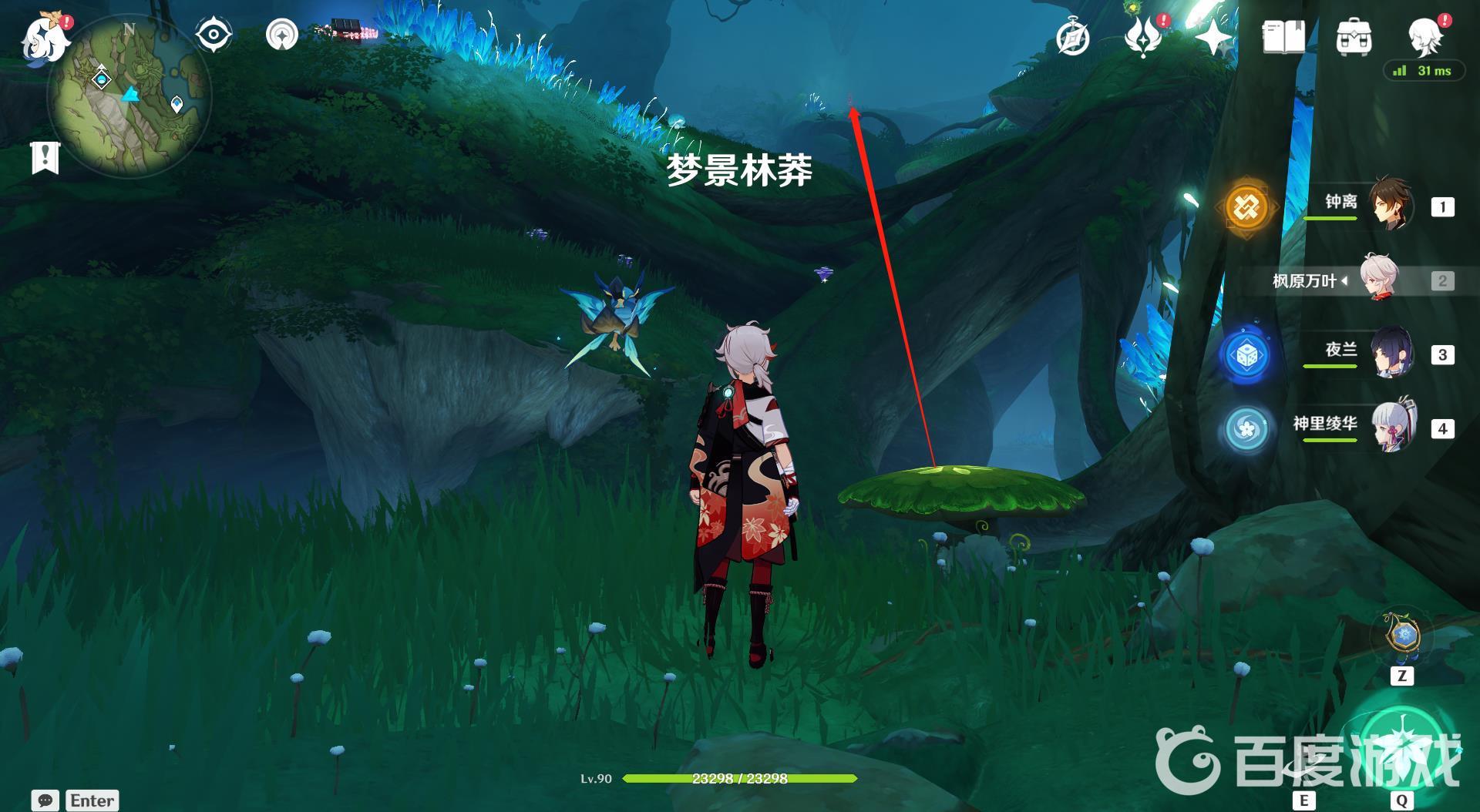3、走到洞穴地步後可以看到一個彈彈菇,利用彈彈菇向上方前進,去到前方的挑戰點處。