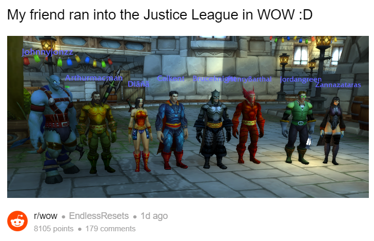 《魔獸世界》外服玩家在聖誕節期間舉行了一場特別的COS大賽,DC正義聯盟降臨暴風城。