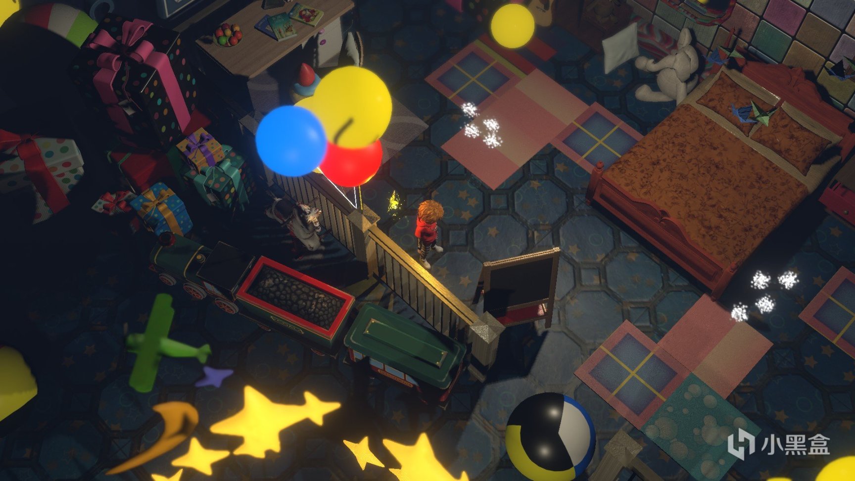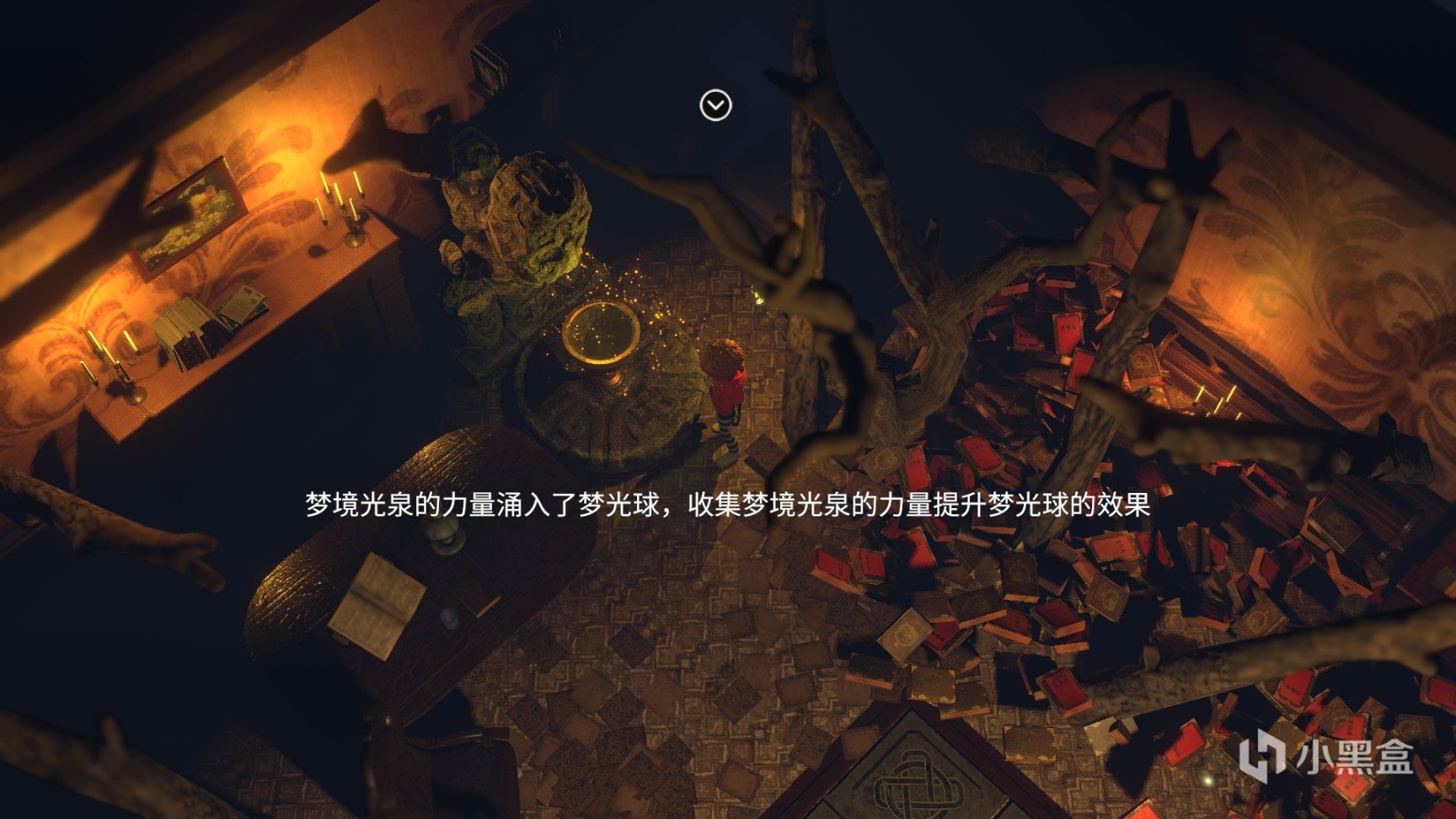 為了讓玩家有更長的遊玩時間,本作還加入了大量的收集玩法要素。場景中散落各處的字條和信件負責進行碎片化敘事,我們可以通過它們來了解比爾究竟經歷過什麼;而場景中需要花費比較多時間去尋找和收集的各種劇情道具,則更是會產生一些影響故事走向的作用,比如好的結局需要玩家在收集到一些特定的道具後才會滿足觸發的條件。在一個章節的游戲結束後,玩家可以回到一個類似於自己主城的地點,這里會有一些設施以及主角和夢精靈的形象皮膚,也是需要通過收集一些道具才能解鎖的。在冒險中解決主線任務往往是不夠的,但玩家如果不看攻略的話也很難一周目就收集到比較多的劇情道具,在一周目熟悉地圖和關卡後進行二周目,追求更好的收集進度就很重要了,游戲的多周目價值就在於此。