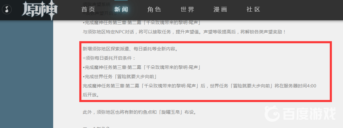 開啟須彌每日委託需要完成魔神任務第三章第二幕千朵玫瑰帶來的黎明尾聲,完成世界任務冒險就要大步向前,然後找到須彌凱瑟琳就可以開啟日常了。