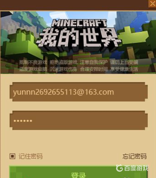 6、然後將剛才我們注冊的我的世界的賬號和密碼輸入到登錄界面,點擊登錄就可以享受我的世界了。