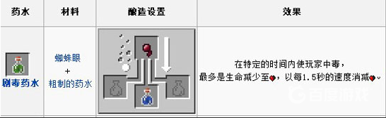 作用:使人持續中毒,維持血量在半格,回上來一格扣一格。(若非自殘愛好者請勿服用)