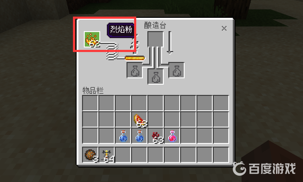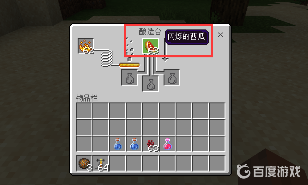 首頁 我的世界 問答 我的世界生命恢復葯水怎麼做? 2022-12-30 1、進入遊戲,點擊打開釀造台。2、將烈焰粉放入釀造台左上角的格子里。3、再將閃爍的西瓜放入釀造台最上面的格子中。4、在釀造台的最下面其中一格放入粗製的葯水。5、等待釀造台製作完畢後,粗製的葯水就會變為治療葯水。