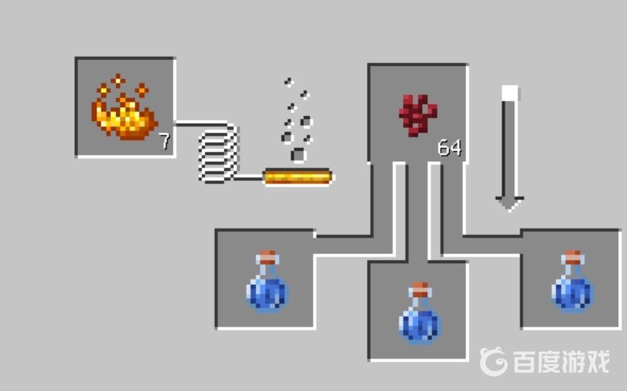 首頁 我的世界 問答 mc治療葯水怎麼釀造? 2022-12-30 1、需要製造釀造台。由一個烈焰棒和三個圓石組成。2、左邊放置烈焰粉,右邊放置下界龐,下面放三瓶葯水。製造粗糙的葯水。3、左邊繼續放烈焰棒,右邊放需要製作各種葯水的原材料,下面是粗糙的葯水,變可以得到想要的葯水了。