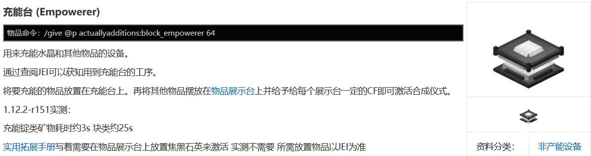 首頁 我的世界 問答 我的世界充能台怎麼使用? 2022-12-30 將要充能的物品放置在充能台上。再將其他物品擺放在物品展示台上並給予給每個展示台一定的CF即可激活合成儀式。可以用來用來充能水晶和其他物品的設備。