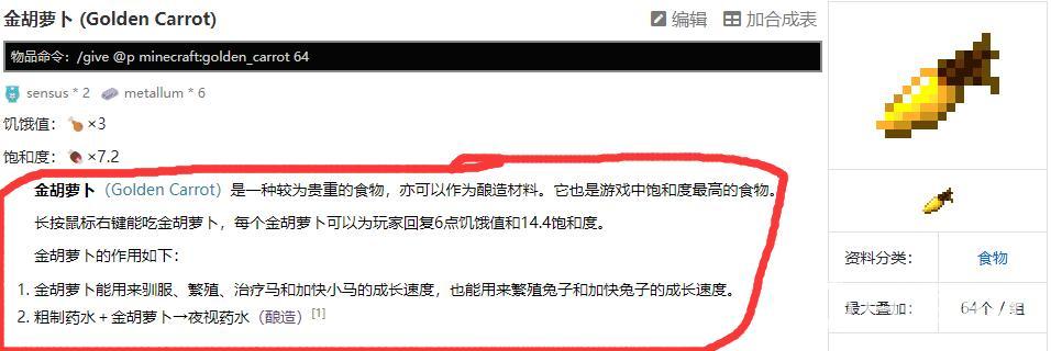 首頁 我的世界 問答 我的世界金蘿卜有什麼用? 2022-12-30 可以用來當食物,用來馴服、繁殖、治療馬和加快小馬的成長速度,也能用來繁殖兔子和加快兔子的成長速度,還能做夜視葯水。1,首先我們進入官網,點擊右上角SUPPORT查看相關說明。2,然後找到金蘿蔔的相關說明,就可以發現作用了。