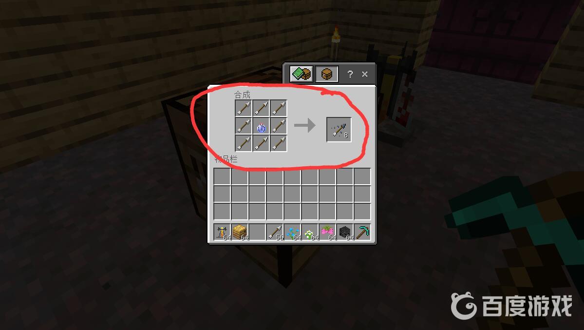 2,然後在工作台中間放一瓶滯留型藥水,周圍放上弓箭就可以合成藥水箭了。