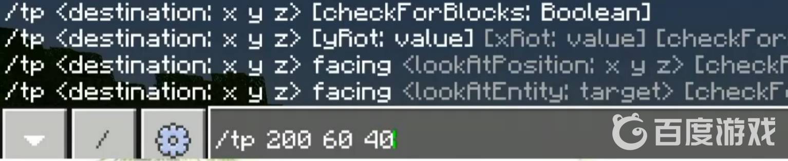 2、輸入後,會出現這個地形的坐標,在輸入欄里輸入/tp 坐標