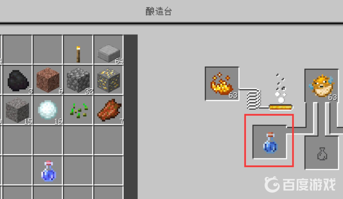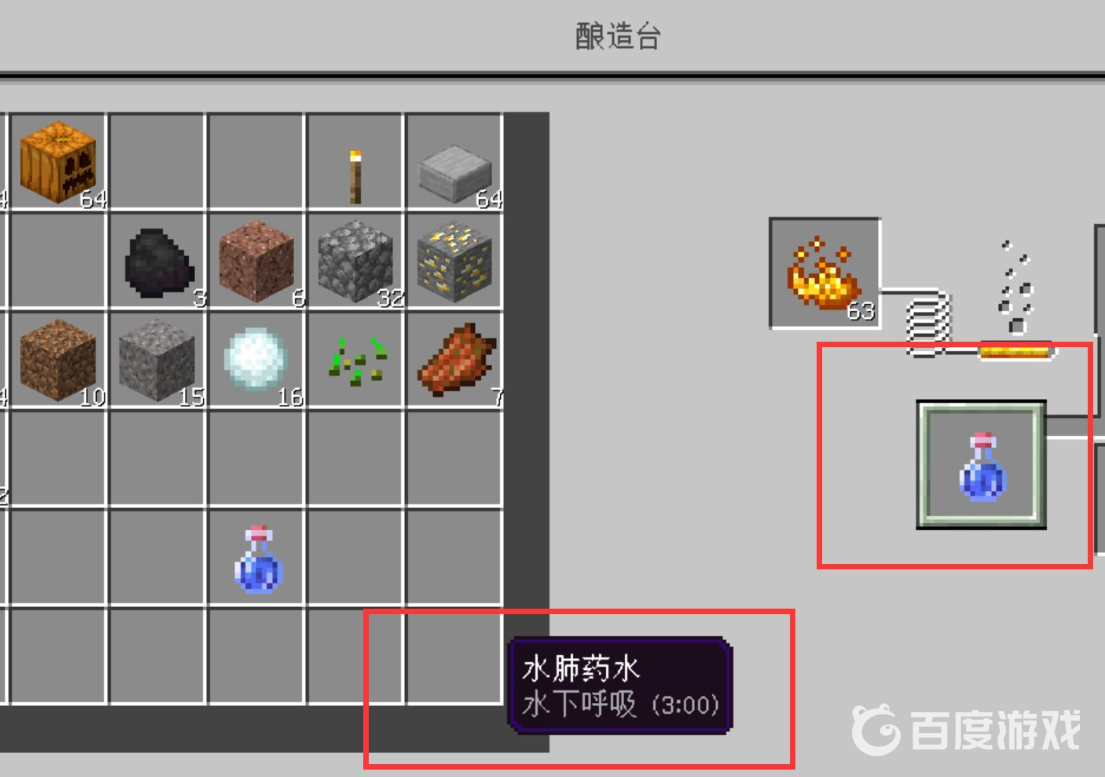 首頁 我的世界 問答 我的世界潛水藥劑怎麼做? 2022-12-30 1、在地上放置一個釀造台。2、把烈焰粉放到右側的左上角。3、把河豚直接放置在右側的最上方。4、右側的下方,放上粗製的葯水。5、最後,就可以直接製作出一個水肺葯水了(水肺葯水就是俗稱潛水葯劑)。