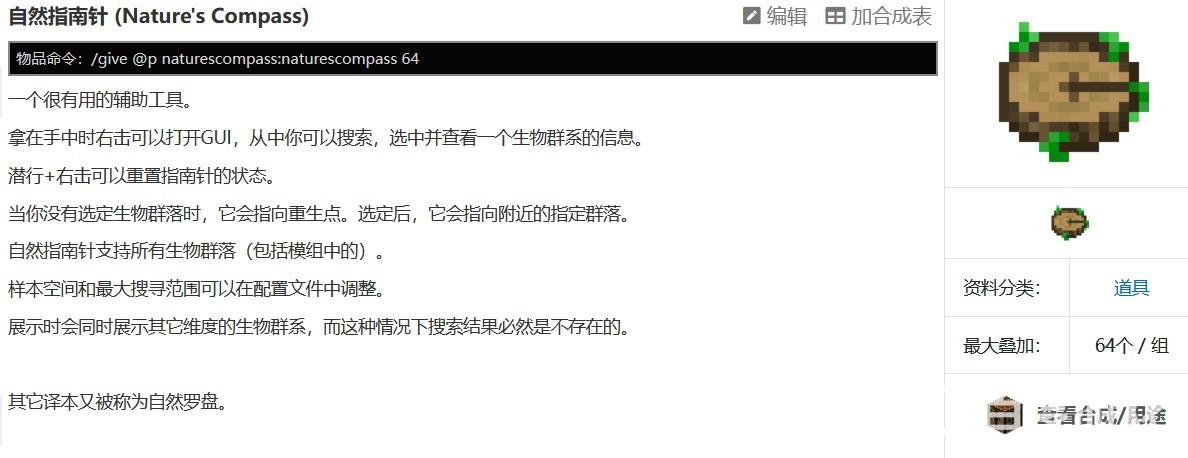 首頁 我的世界 問答 我的世界自然羅盤怎麼用? 2022-12-30 自然羅盤拿在手中時右擊可以打開GUI,從中你可以搜索,選中並查看一個生物群系的信息。潛行 右擊可以重置指南針的狀態。當你沒有選定生物群落時,它會指向重生點。選定後,它會指向附近的指定群落。